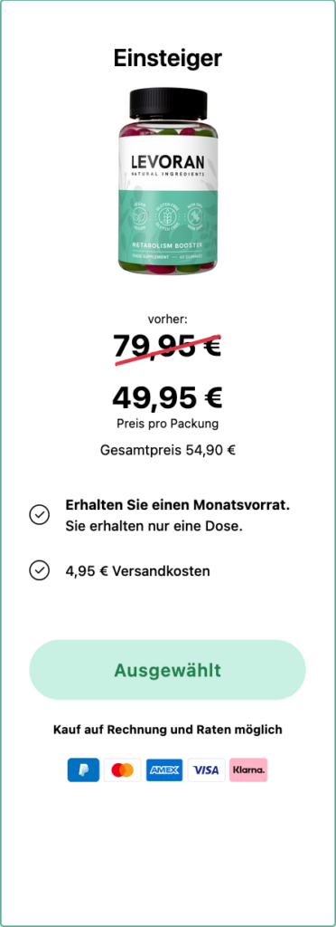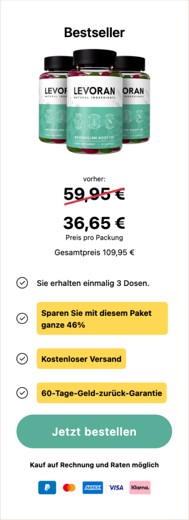 Schauen wir uns abschließend die Bestelldetails an, wenn Sie mit Levoran Ihre Gewichtsbalance in Angriff nehmen möchten. Wir empfehlen, die Gummies direkt beim Hersteller zu bestellen, denn dann erhalten Sie die versprochene Qualität und profitieren gleichzeitig von bestimmten Angeboten.