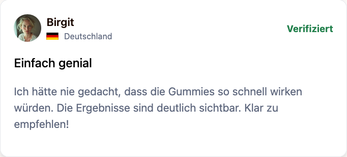 Überprüfen Sie auch, ob Sie gegen einen der Inhaltsstoffe allergisch sind. Nehmen Sie die Gummies in diesem Fall nicht ein. Im Zweifelsfall können Sie auch einen Arzt konsultieren, der Ihnen weitere Informationen oder Ratschläge zur Einnahme der Gummies geben kann.