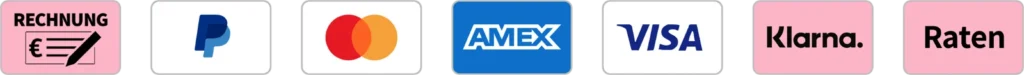 Zahlungsmöglichkeiten: iDeal, PayPal, auf Rechnung (Klarna), Kreditkarte (Visa, Mastercard, American Express)